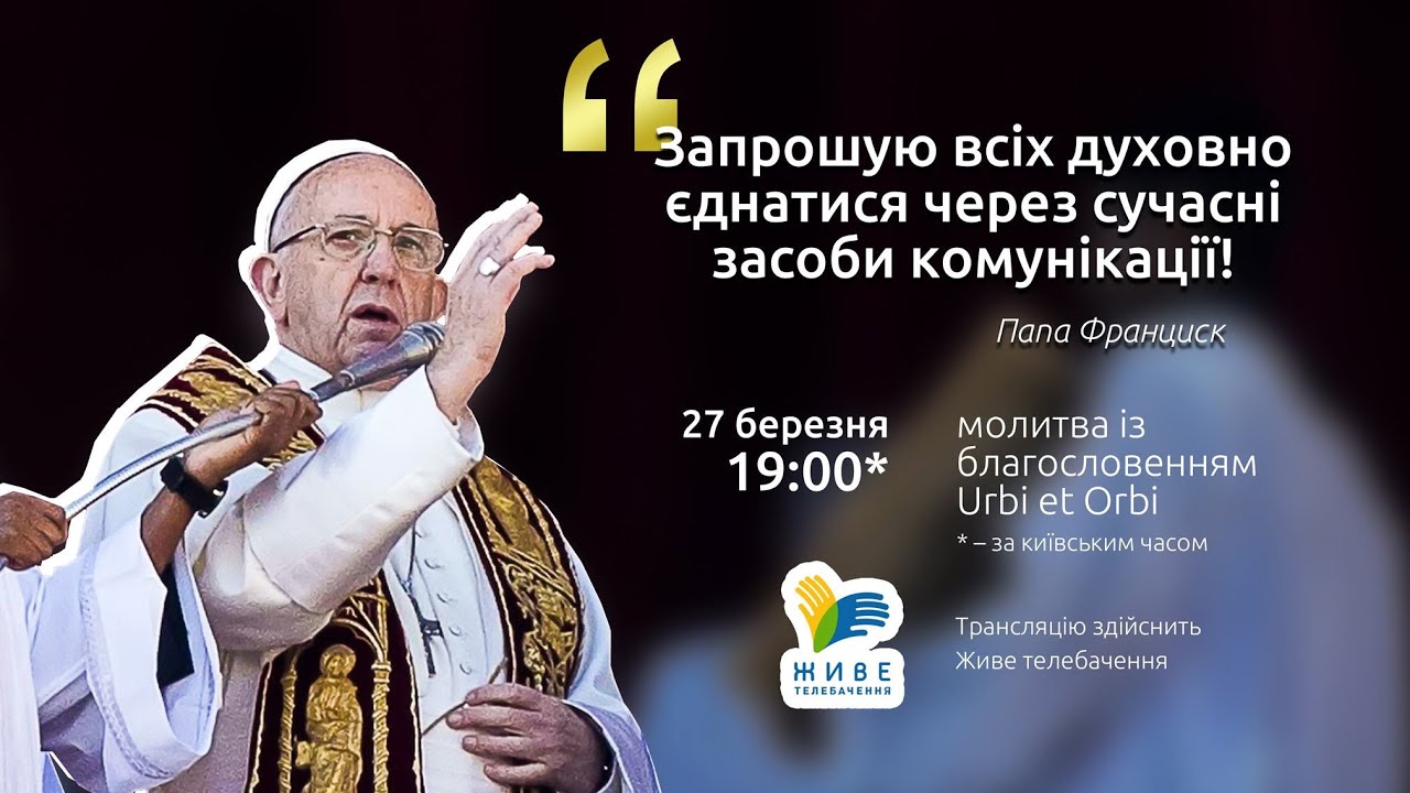 27 березня о 19-00 за київським часом (18-00 за римським) Папа Римський Франциск провів молитву, Євхаристійну адорацію та уділив особливе благословення Urbi et Orbi (містові і світові), щоби «з вірою та надією переживати цей період випробування для всього людства». Блаженніший Святослав заохочував всіх вірних УГКЦ єднатися у цій особливій молитві за допомогою «Живого телебачення», яке її ретранслювало.
