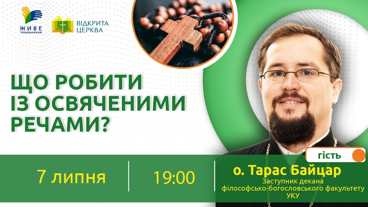 У програмі «Відкрита Церква» на «Живому Телебаченні» розмовляємо про речі, які ми зазвичай освячуємо у храмі. Що із ними робити та як правильно утилізувати освячені предмети, які більше нам не слугують. У студію «Живого Телебачення» завітає заступник декана філософсько-богословського факультету УКУ о. Тарас Байцар.