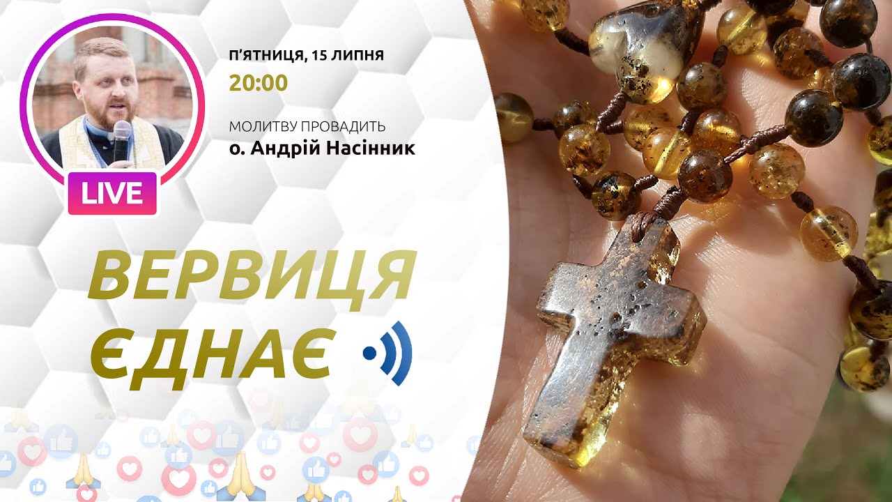 15 липня молитву на вервиці в рамках ініціативи «Вервиця єднає» буде провадити о. Андрій Насінник з Лозової на Харківщині. Початок молитви о 20-00 за київським часом.