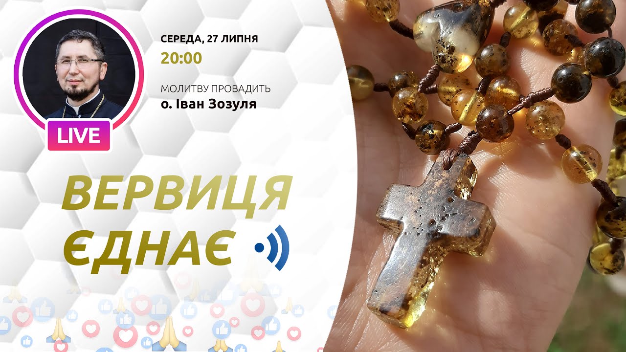 27 липня молитву на вервиці в рамках ініціативи «Вервиця єднає» буде провадити о. Іван Зозуля з Йосипівки на Тернопільщині. Початок молитви о 20-00 за київським часом.