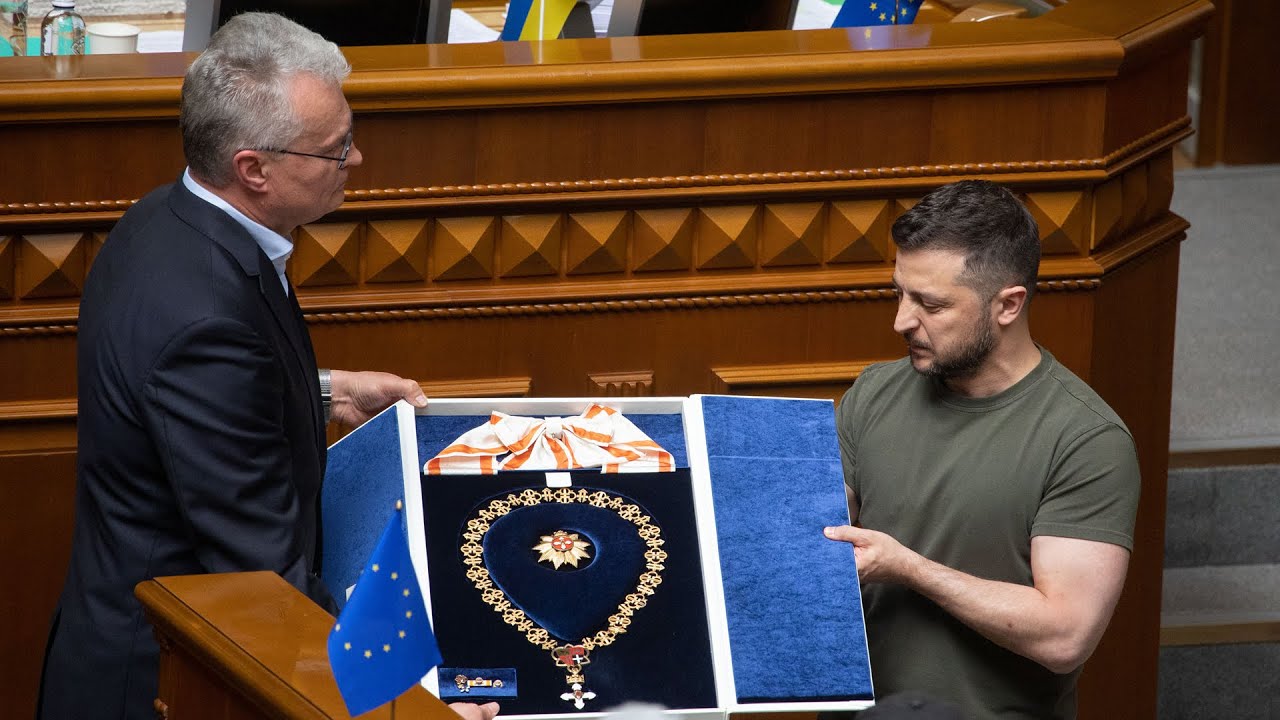 Президент Литви Гітанас Наусєда, який прибув до Києва з нагоди Дня Української Державності, нагородив Президента України Володимира Зеленського найвищою державною нагородою Литовської Республіки – орденом Вітаутаса Великого із золотим ланцюгом.