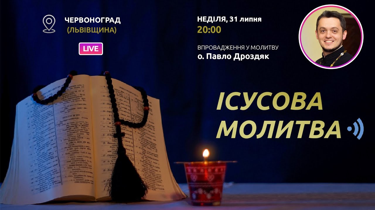 У неділю, 31 липня 2022 року, на «Живому телебаченні» о 20-00 пряма трансляція «Ісусової молитви». ВПРОВАДЖУЄ у МОЛИТВУ о. Павло Дроздяк.
