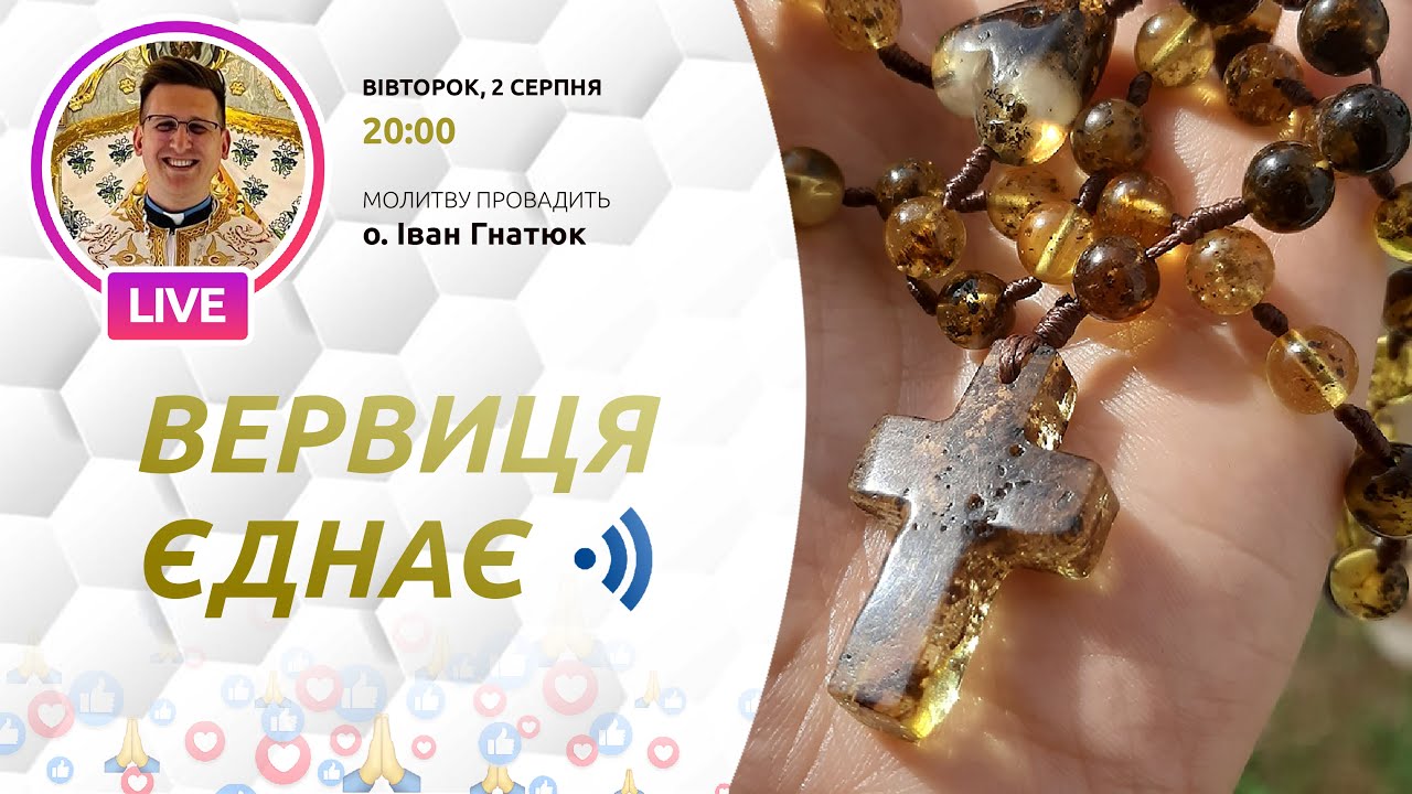 2 серпня молитву на вервиці в рамках ініціативи «Вервиця єднає» буде провадити о. Іван Гнатюк з Козина на Івано-Франківщині. Початок молитви о 20-00 за київським часом.