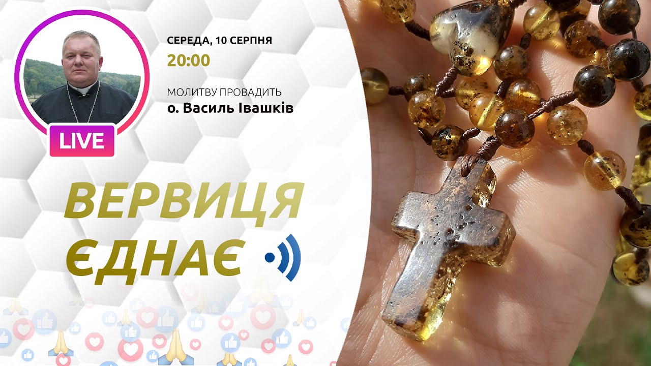 10 серпня молитву на вервиці в рамках ініціативи «Вервиця єднає» буде провадити о. Василь Іваншків з Убині на Львівщині. Початок молитви о 20-00 за київським часом.