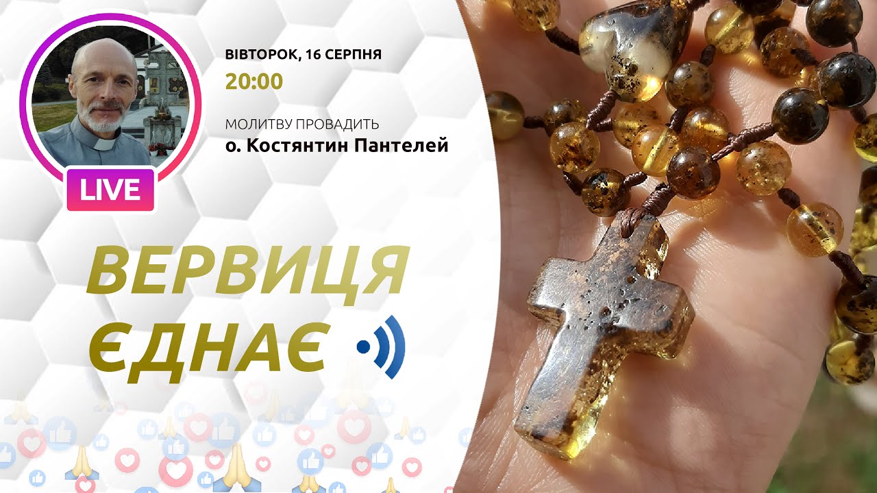 16 серпня молитву на вервиці в рамках ініціативи «Вервиця єднає» буде провадити о. Костянтин Пантелей з Києва. Початок молитви о 20-00 за київським часом.