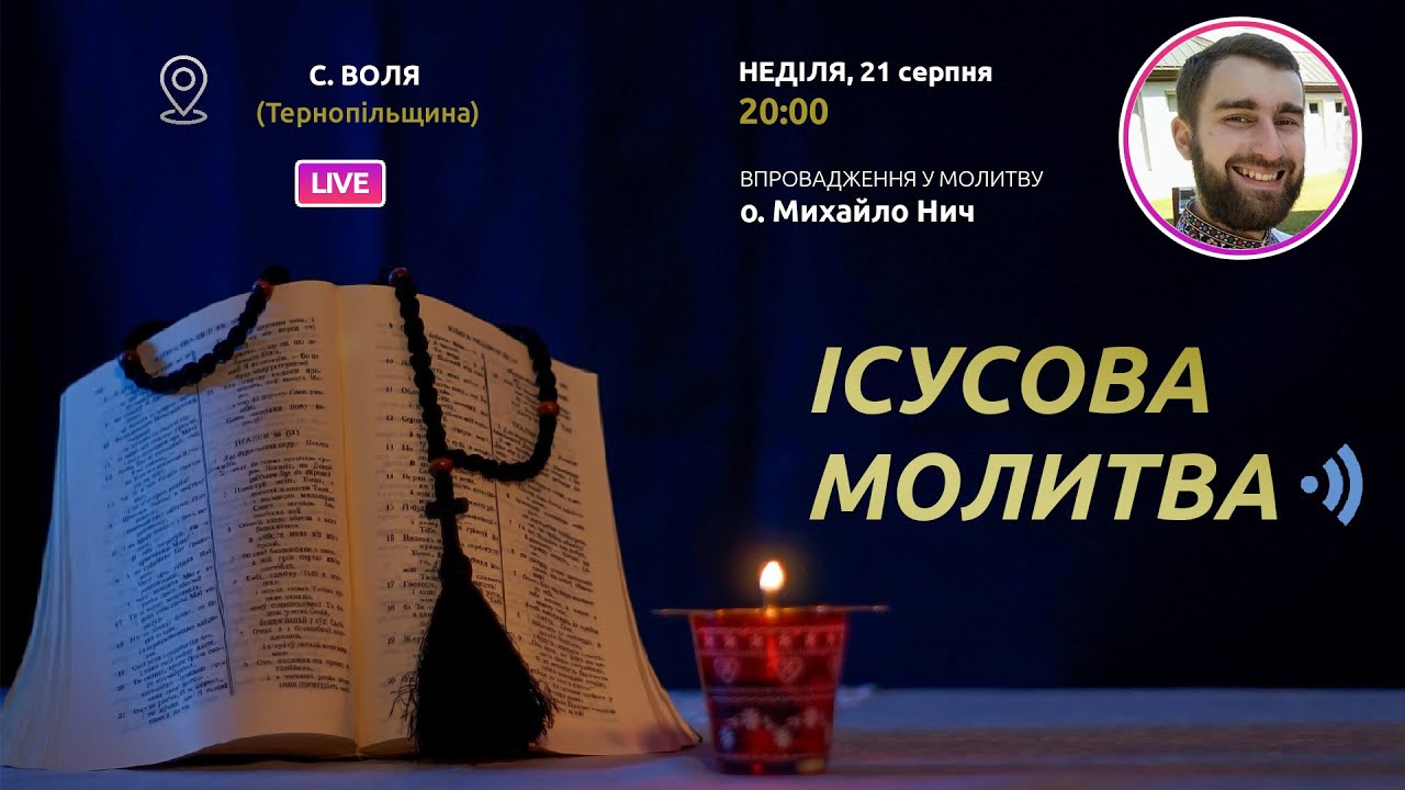 У неділю, 21 серпня 2022 року, на «Живому телебаченні» о 20-00 пряма трансляція «Ісусової молитви». ВПРОВАДЖУЄ у МОЛИТВУ о. Михайло Нич. ПРОВАДИТЬ молитву о. Юрій Тихий з парафіянами храму св. Миколая в с. Воля, Тернопільщина.