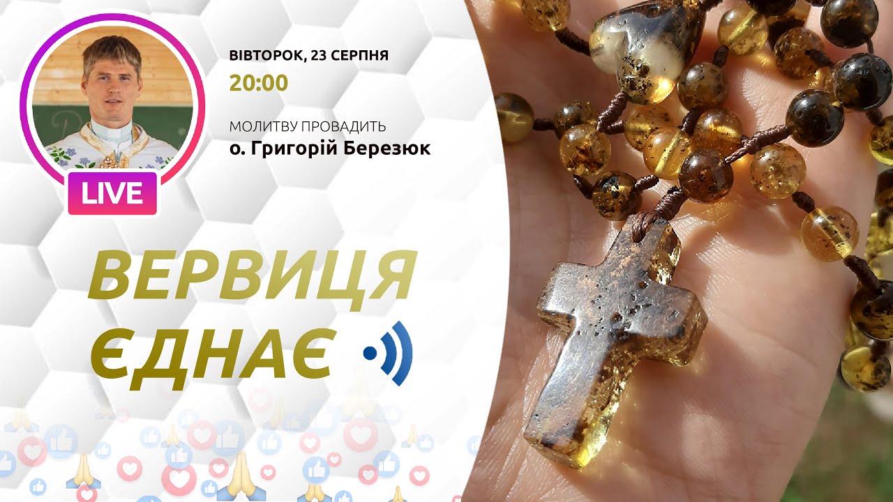 23 серпня молитву на вервиці в рамках ініціативи «Вервиця єднає» буде провадити о. Григорій Березюк з Старого на Київщині. Початок молитви о 20-00 за київським часом.