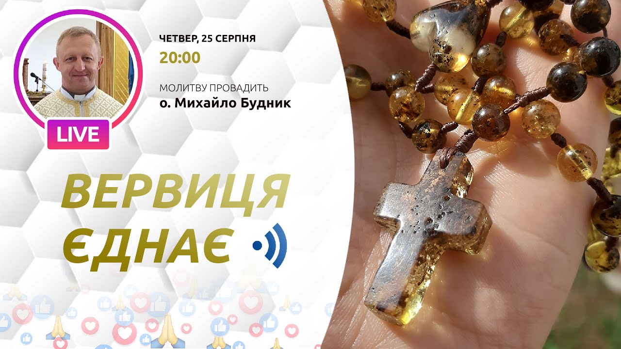 25 серпня молитву на вервиці в рамках ініціативи «Вервиця єднає» буде провадити о. Михайло Будник з Бершаді на Вінниччині. Початок молитви о 20-00 за київським часом.