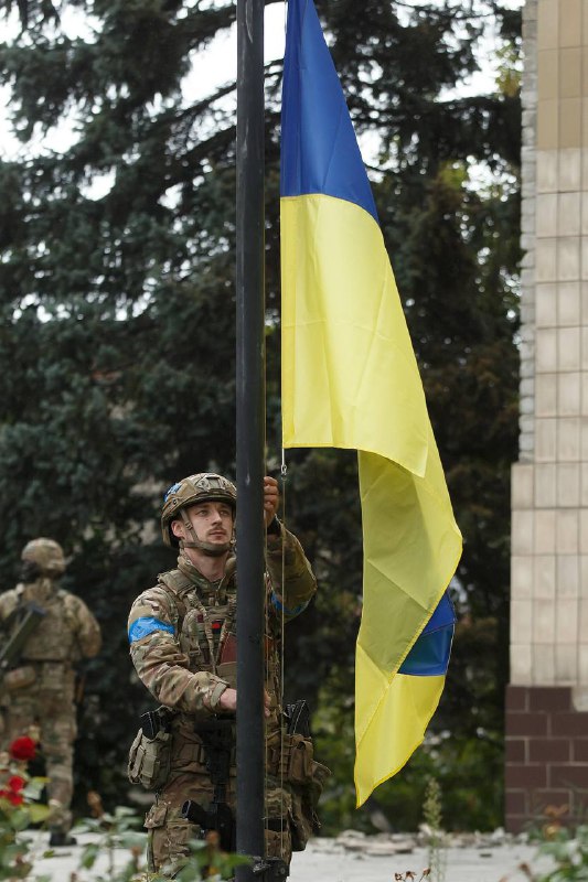 Ізюм знову під українським прапором! Під головуванням Президента України Володимира Зеленського, командувача Сухопутних військ ЗСУ Олександра Сирського в Ізюмі урочисто підняли прапор України.