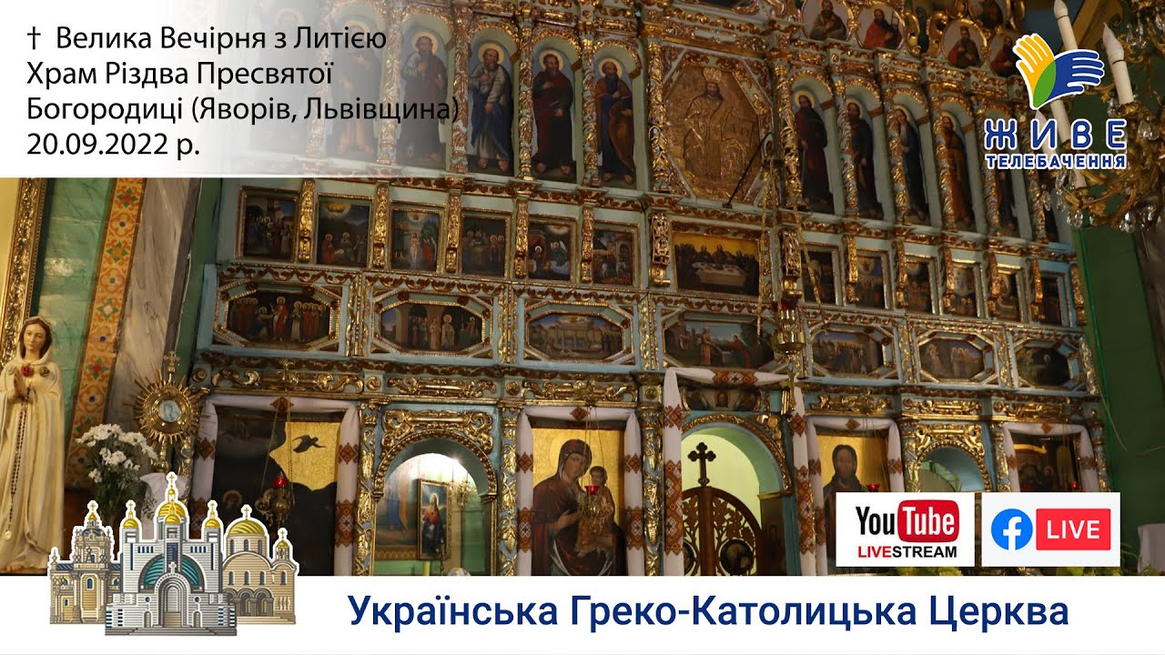 У вівторок, 20 вересня, о 18-00 – онлайн-трансляція Великої Вечірні з Литією у храмі Різдва Пресвятої Богородиці (Яворів, Львівщина).