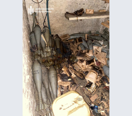 Під час відпрацювання об’єкта вилучено десятки ящиків з боєприпасами серед яких постріли для гармат та танків різних калібрів, міни, гранати, метальні порохові заряди.