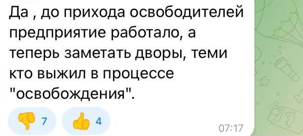 "До приходу "освободителей" підприємство працювало, а тепер замітати двори", "Поки не було "освободителей" усі працювали, жили, місто процвітало". Так пишуть маріупольці, які порівнюють життя "до" та "після". Адже вони бачать, що місто, яке до війни було центром розвитку, перетворилося на гетто для виживання. І жодні "картинки" не змінять цього.