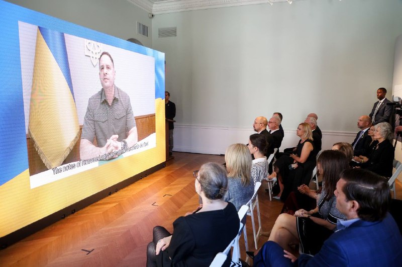 У Нью-Йорку відкрили виставку «Російські воєнні злочини» з Президентом Латвії Егілсом Левітсом і керівником Офісу Президента Андрієм Єрмаком.