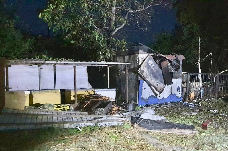Через атаку спалахнули чотири пожежі у торговельних кіосках та гаражах. Займання вогнеборці уже приборкали.