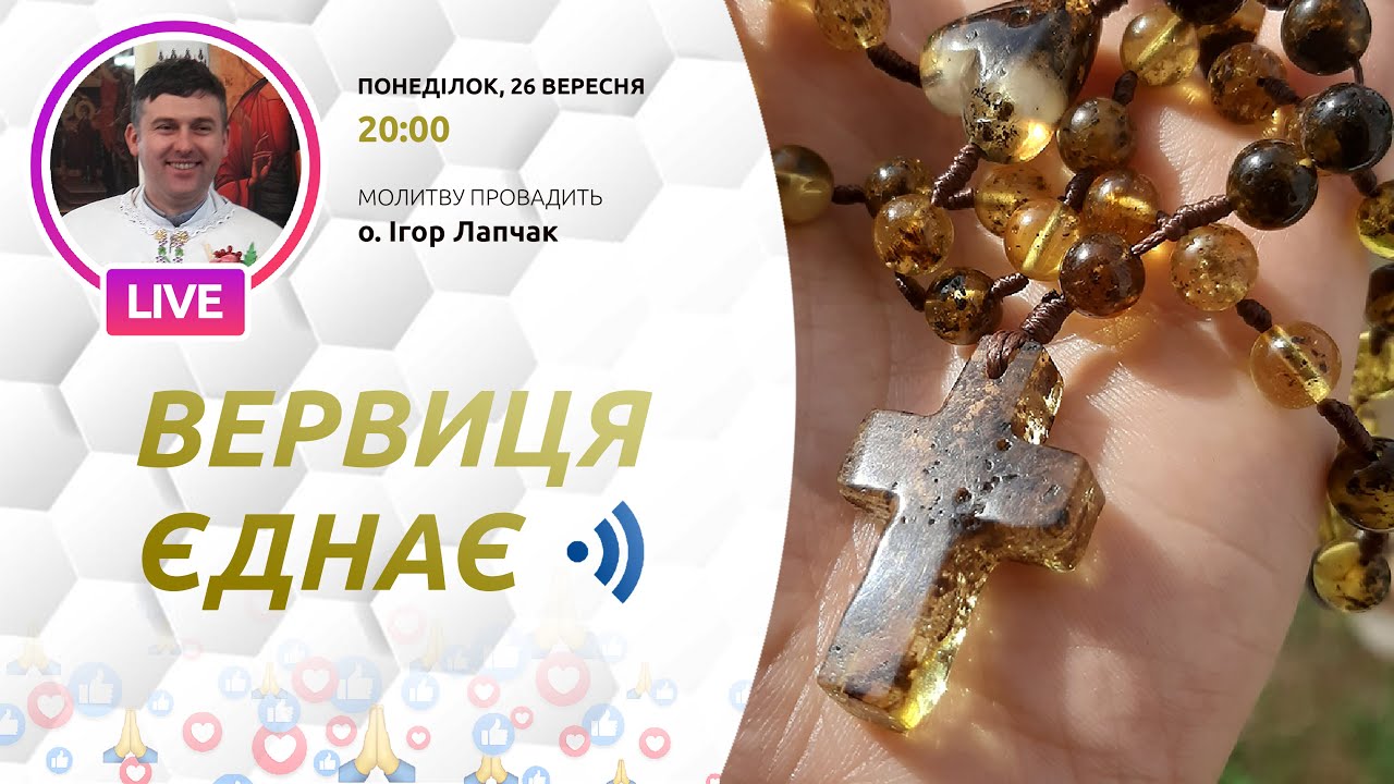 26 вересня молитву на вервиці в рамках ініціативи «Вервиця єднає» буде провадити о. Ігор Лапчак з Віньківців на Хмельниччині. Початок молитви о 20-00 за київським часом.