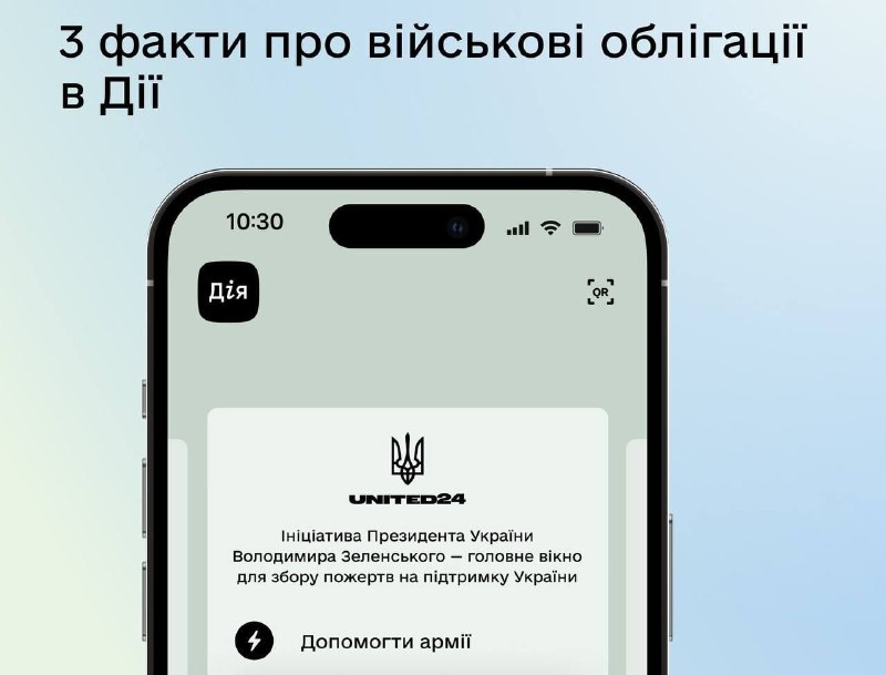 Команда “Дії” працює над запуском облігацій у застосунку. Ви зможете придбати їх, щоб підтримати економіку України та задонатити на потреби армії, а потім — отримати свої кошти назад із відсотками. Кнопка придбання цих паперів незабаром з’явиться на головному екрані застосунку. Її додадуть до меню вкладки United 24, де уже є можливість допомогти армії добровільним платежем.