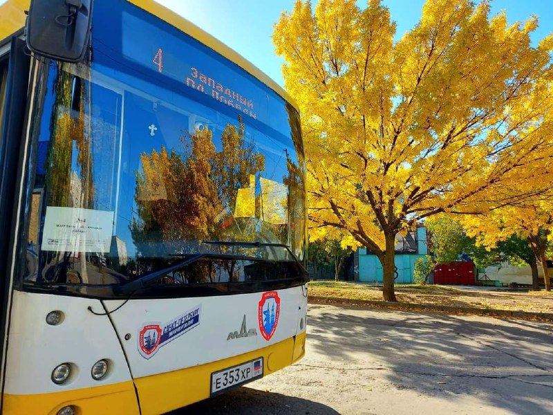 На нові автобуси, які Маріупольська міська рада закупила спільно з міжнародними партнерами, наклеїли напис "санкт-петербург Маріуполю".
