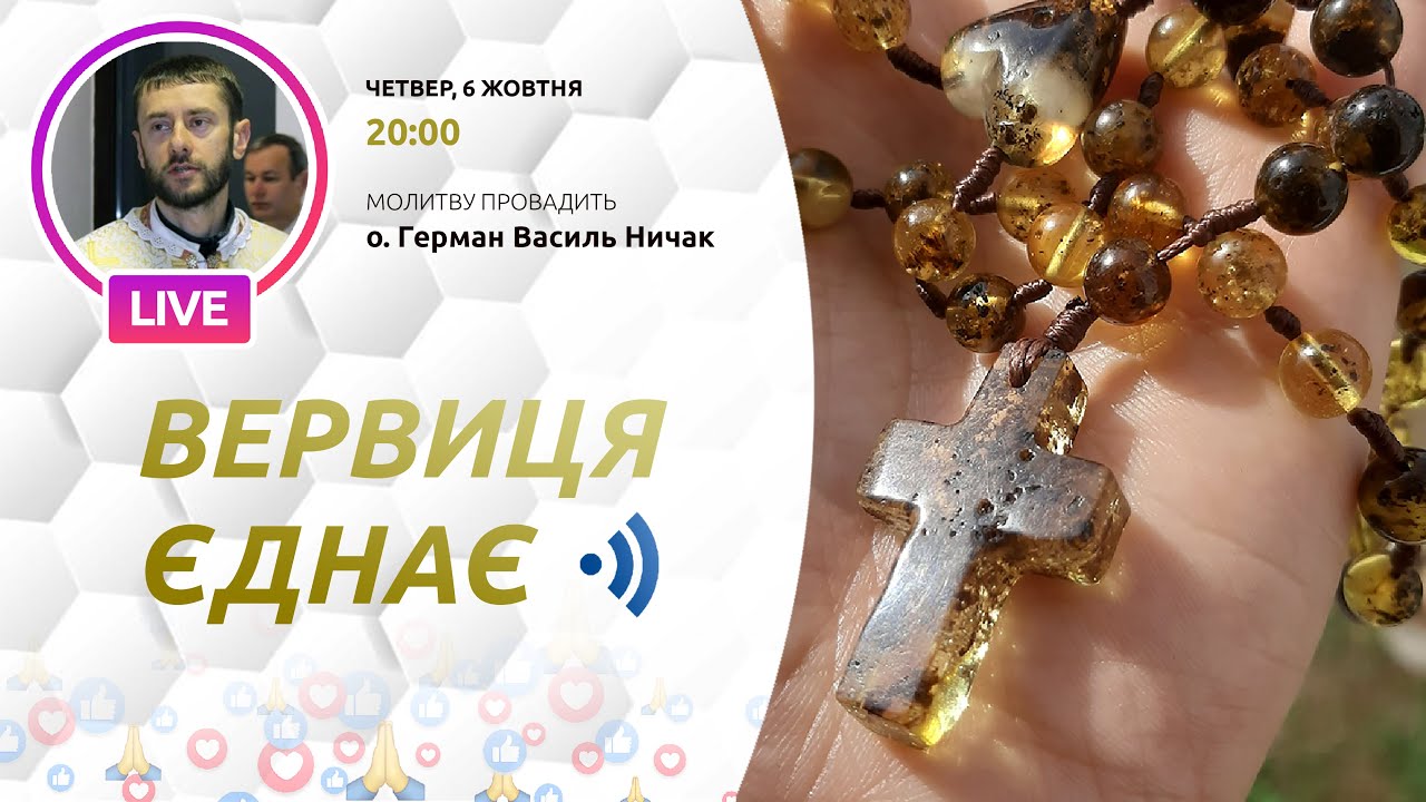 6 жовтня молитву на вервиці в рамках ініціативи «Вервиця єднає» буде провадити о. Герман Василь Ничак з Червонограда на Львівщині. Початок молитви о 20-00 за київським часом.