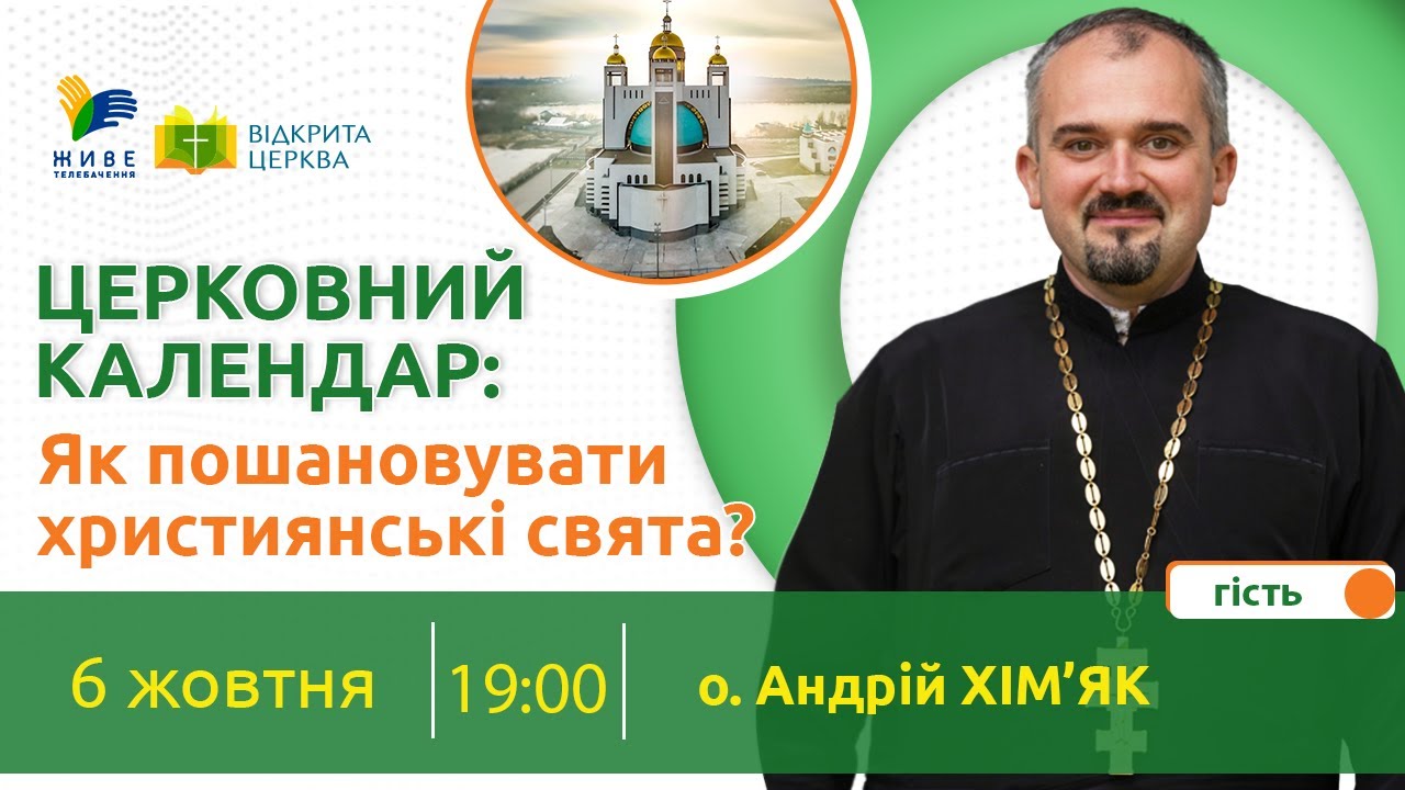 У програмі «Відкрита Церква» на «Живому Телебаченні» розмовляємо про Церковний календар та про святих, чию пам’ять християни вшановують щодня. Дізнаємось про різні міфи, пов’язані із великими і малими святами у церковному календарі. А ще розповімо коли і як святкувати іменини. У студію «Живого Телебачення» завітає о. Андрій Хімяк. Він є в.о. Секретаря Синоду Єпископів Української Греко-Католицької Церкви.