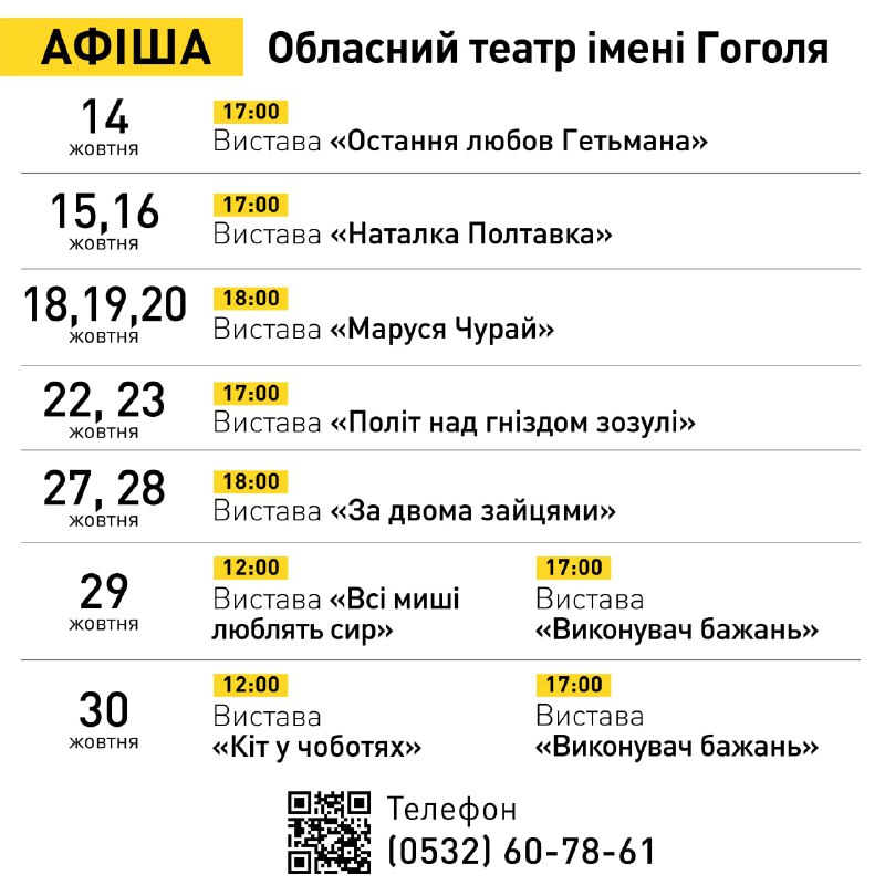 Відзавтра театрляльок, а з14 жовтня театр імені Гоголя відновлюють роботу на своїх рідних сценах. Колективи з нетерпінням чекають глядачів на вистави і для дітей, і для дорослих. Більше інформації про репертуар – на сайтах закладів та їхніх сторінках у соціальних мережах.