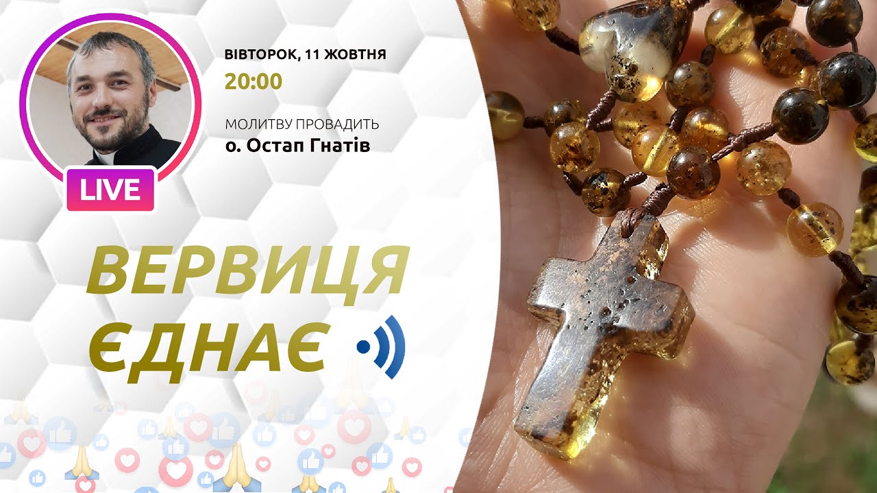 11 жовтня молитву на вервиці в рамках ініціативи «Вервиця єднає» буде провадити о. Остап Гнатів з с. Велика Вільшанця, Львівщина. Початок молитви о 20-00 за київським часом.