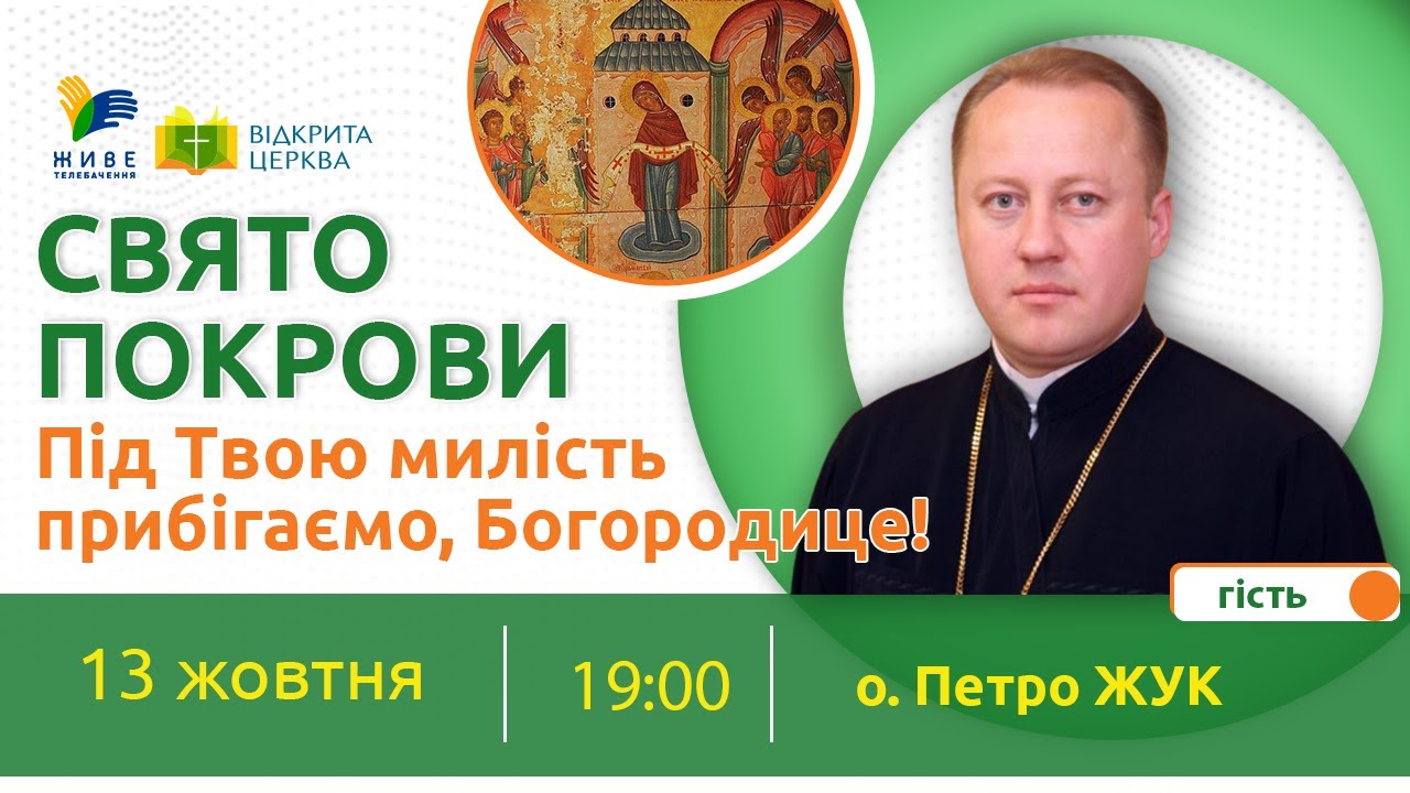 У програмі «Відкрита Церква» на «Живому Телебаченні» розмовляємо про свято Покрови Пресвятої Богородиці. Дізнаємось про історію та значення свята, зокрема, для захисників України всіх часів. Гостем у студії «Живого Телебачення» будуть о. Петро Жук. Він є ректором Київської Трьохсвятительської духовної семінарії УГКЦ.