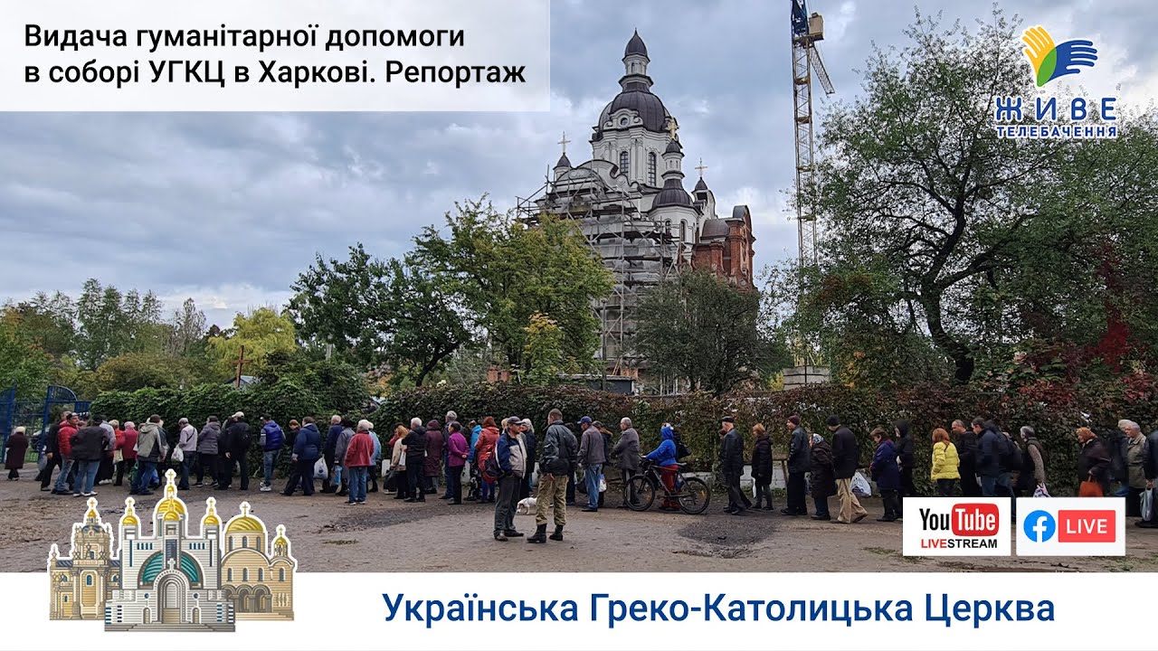 Видача гуманітарної допомоги в соборі УГКЦ у Харкові | Репортаж Живе телебачення, Харків св. Миколая