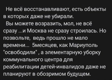 😢Ось такий вигляд має Центр комплексної реабілітації дітей з інвалідністю у Лівобережному районі. Окупанти пошкодили будівлю і тепер вона знаходиться у занедбаному стані. Маріупольці вже скаржаться, що колабораційна влада навіть не спромоглася провести елементарне прибирання.