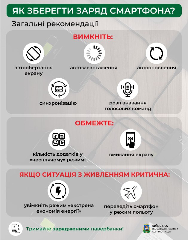 ⚡️ 21 жовтня. Із 7 ранку до 23 вечора. Максимально заощадливо використовуємо електроенергію 21.10.2022, П’ятниця | 13:02 Автор допису: Голова Київської обласної військової адміністрації ⚡️ 21 жовтня. Із 7 ранку до 23 вечора. Максимально заощадливо використовуємо електроенергію. Щоб залишатися на зв'язку, у разі вимушеного відключення світла — дотримуйтесь загальних рекомендацій, як зберегти заряд смартфона. Бути відповідальними — це наш обов'язок сьогодні. 🇺🇦 Джерело Друк / PDF