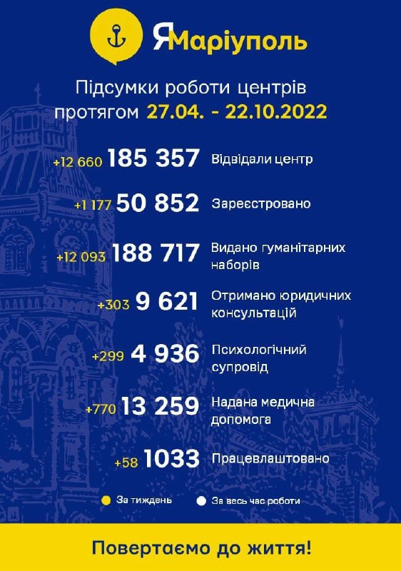 🟠Ділимося підсумками роботи центрів "ЯМаріуполь" за тиждень