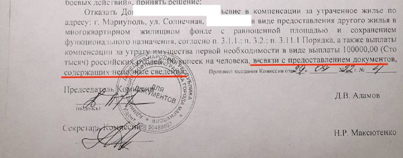 😡російські окупанти знов цинічно обдурили маріупольців. Обіцяли виплати за втрачене житло, а тепер масово видають відмови.