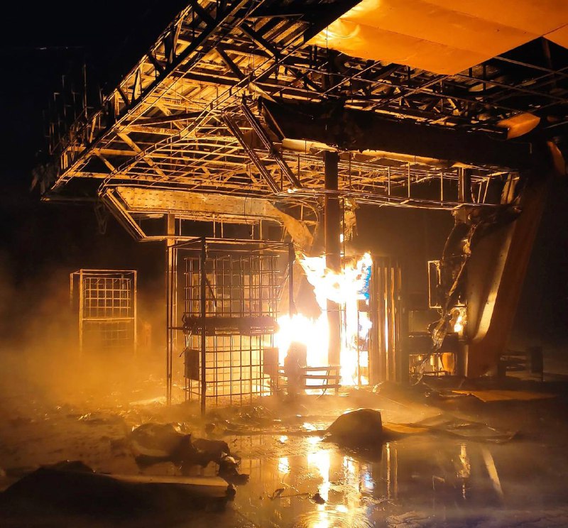 У Нікополі зайнялася автозаправка. Вогонь уже приборкали. Снаряди пошкодили житло, коледж, меблеве виробництво й промислове підприємство.