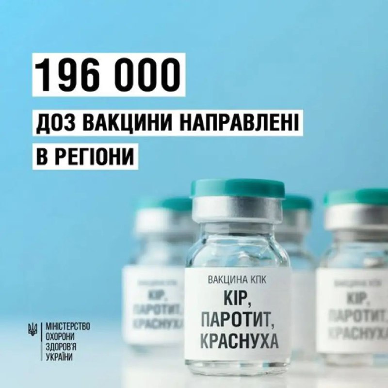 ✅ 196 000 доз вакцини від кору, паротиту та краснухи направлено МОЗ у 23 регіони України. На Хмельниччину прибуде загалом 5724 дози цієї вакцини.