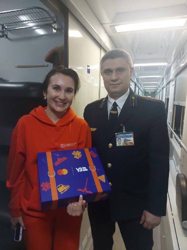Власниці першого квитка, придбаного через мобільний застосунок, пощастило отримати подарунок від наших друзів з Mastercard: справжній залізничний travel-набір з потужним павербенком, термосумкою, термочашкою, гаманцем та аксесуарами для сну☺️