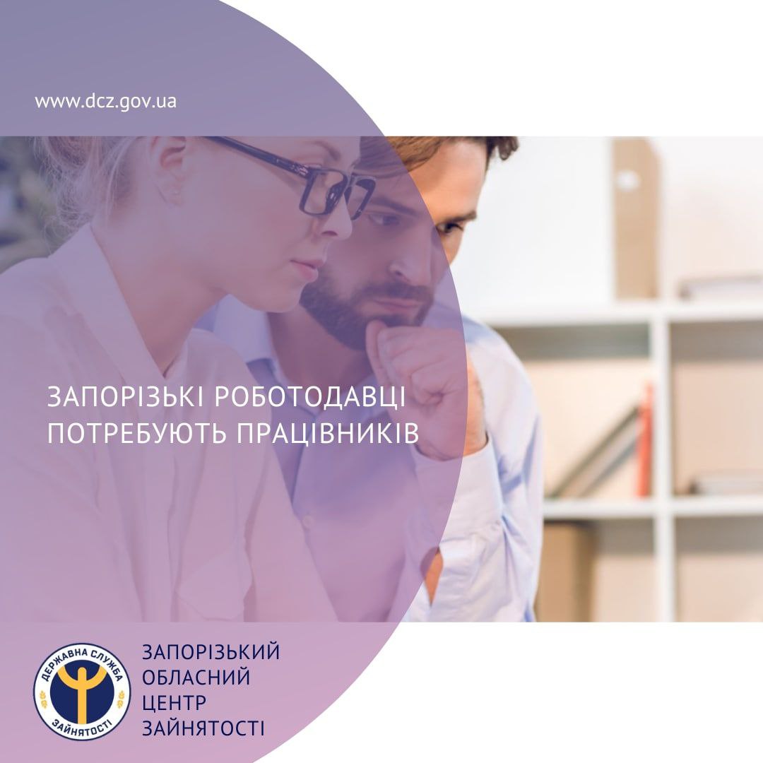 Станом на 07.11.2022 року в базі даних Запорізької обласної служби зайнятості налічується понад 700 пропозицій роботи. Серед яких є наступні: