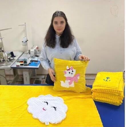 ☝️Ще у 2018 році заснувала у Маріуполі власне підприємство "Марі і Поль". Чимало маріупольців купували тут 🧸м‘які іграшки для подарунків своїм діткам. Поступово Руслана почала виробляти 👗дитячий та жіночий одяг, пледи, 👩🍼аксесуари для дитячих манежів, постільну білизну. Були амбітні плани розвитку. Але війна все змінила😢