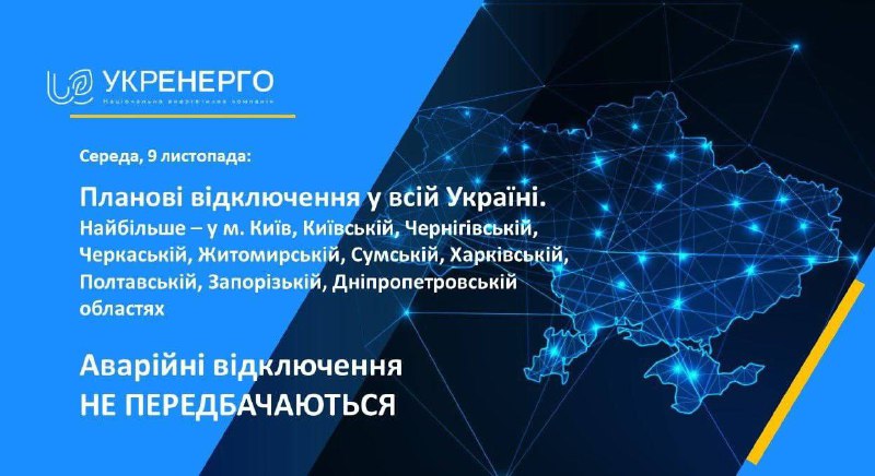 З метою стабілізації стану єдиної енергосистеми України сьогодні, 09 листопада, о 07:00 в Запоріжжі та Запорізькому районі (на підконтрольній Україні території) введено графіки погодинних відключень.
