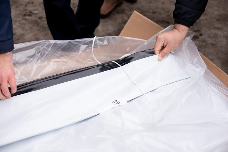 Наші аграрії міцно тримають свій фронт. Вони посіяли й виростили урожай, нині його збирають. І дуже важливе питання – його зберегти. Кожен такий рукав уміщує до 200 тонн зерна. У ньому воно може зберігатися протягом кількох місяців під відкритим небом.
