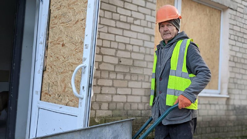 У Балаклії відбудовують центральну лікарню. Будівля зазнала значних руйнувань через влучання ворожих снарядів