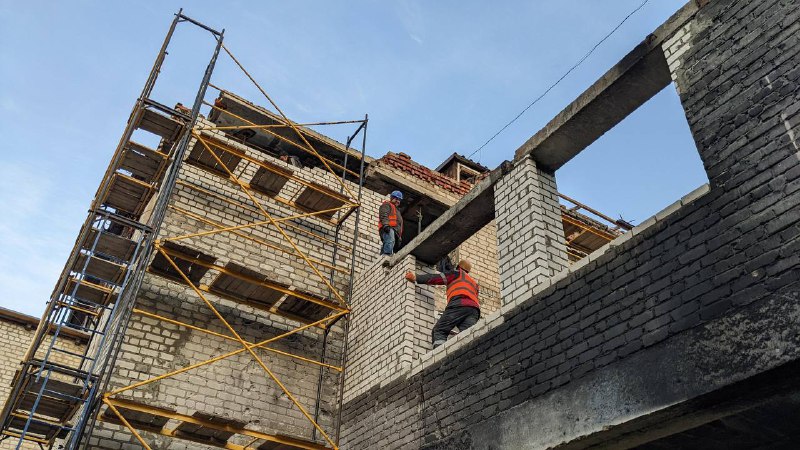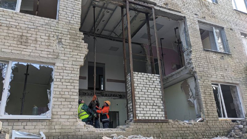 Зараз на об’єкті тривають роботи із відновлення несучих стін, покрівлі та зруйнованого даху одного з корпусів. Це дасть змогу відновити цілісність конструкції.