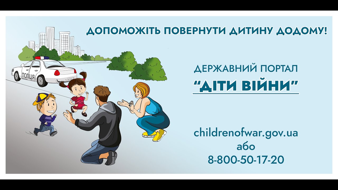 Якщо вам відома будь-яка інформація про зниклу чи депортовану дитину, повідомте її на державному порталі “Діти війни” за адресою: childrenofwar.gov.ua або за номером телефону 0-800-50-17-20.