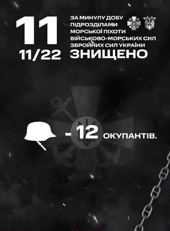 ​​🇺🇦Військові частини та підрозділи Командування морської піхоти Військово-Морських Сил Збройних Сил України, які входять до складу угруповань продовжували виконувати завдання щодо відсічі повномасштабної збройної агресії російської федерації. Минулої доби, 10 листопада, морські піхотинці знищили 12 чоловік живої сили.