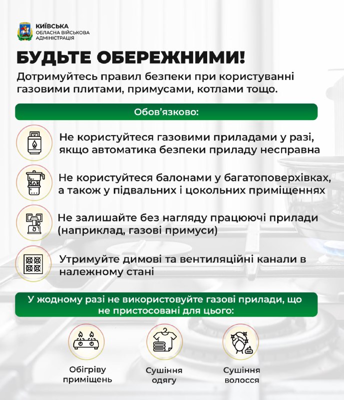 Ваша безпека — на першому місці. Дотримуйтесь правил користування газовими приладами