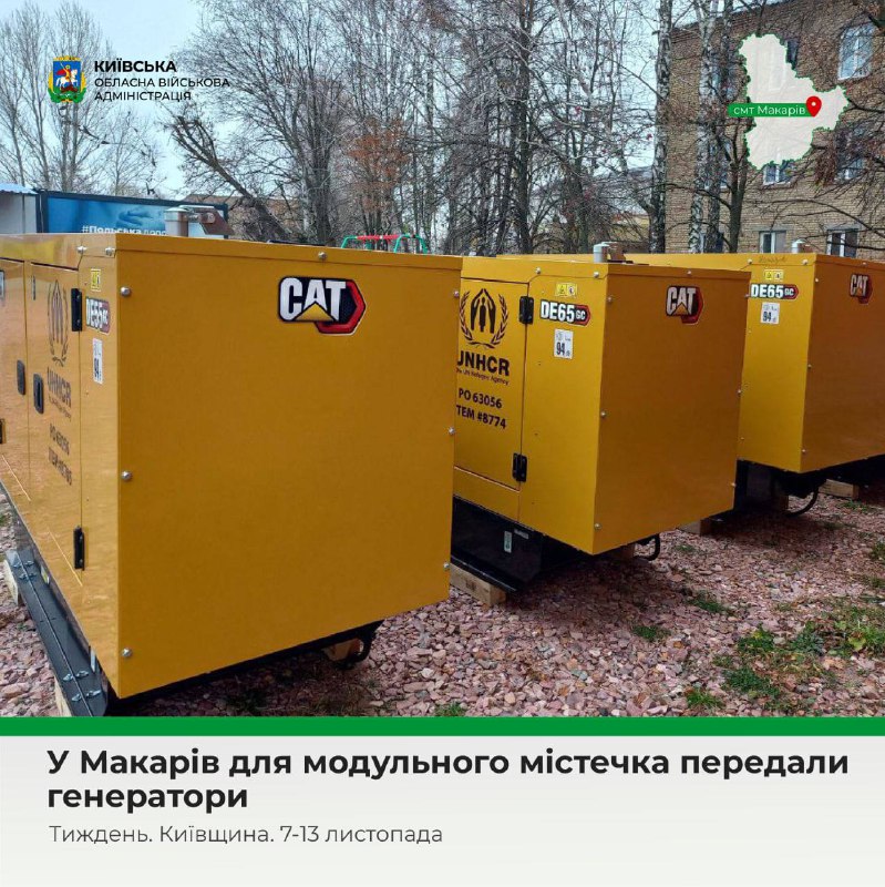 У райони області доставляють генератори — на випадок екстреного відключення світла. Наприклад, їх передали в Макарів для модульного містечка.