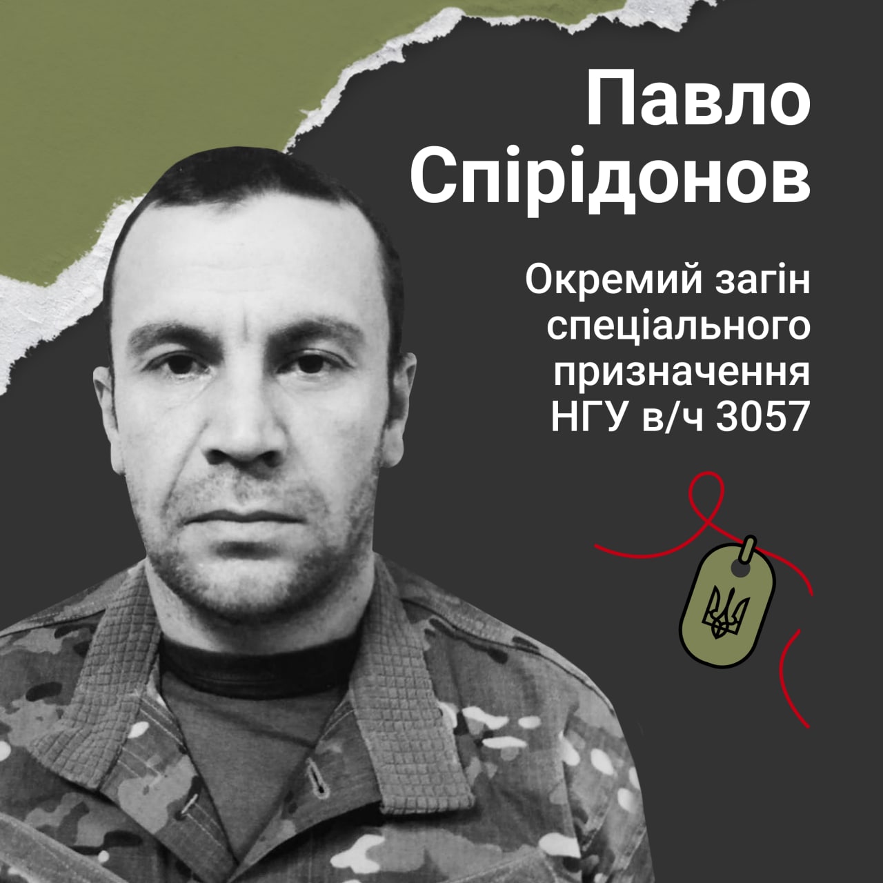 Старший сержант полку «Азов» Павло Спірідонов із позивним «79-й» загинув 4 квітня 2022 року під час оборони Маріуполя. 35-річний захисник отримав смертельне вогнепальне поранення після того, як надав медичну допомогу побратиму.