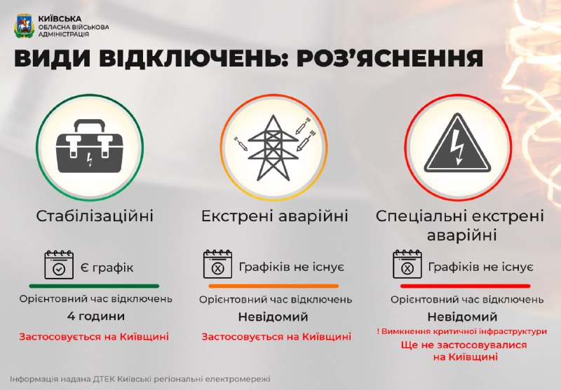 За рішенням “Укренерго” в Київській області продовжуються екстрені вимкнення електрики. Це потрібно для того, щоб втримати стабільну роботу енергосистеми в критичних умовах та уникнути ще більших аварій.