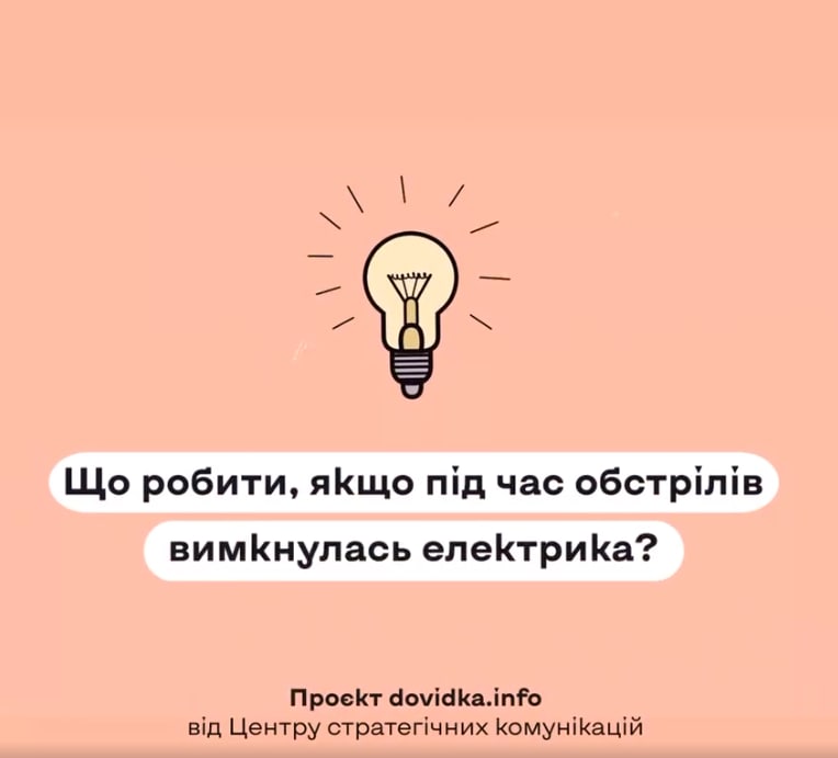 Центр стратегічних комунікацій та інформаційної безпеки у рамках проєкту dovidka.info розробив настанови як діяти у випадку вимкнення електроенергії