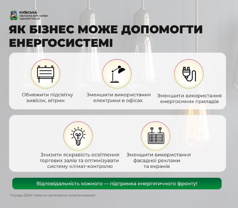 Окремо звертаюся до бізнесу. Відповідальність підприємств на Київщині — зменшити використання фасадної реклами та екранів, обмежити підсвітку вивісок, вітрин.
