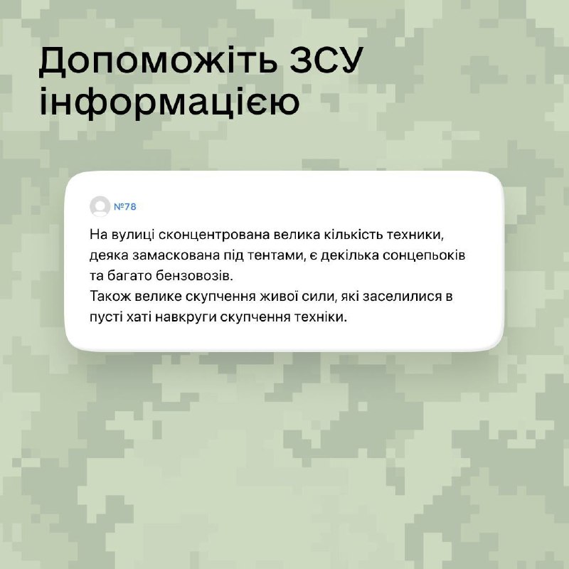 🔹Дислокацію або місця проживання окупантів із геопозицією