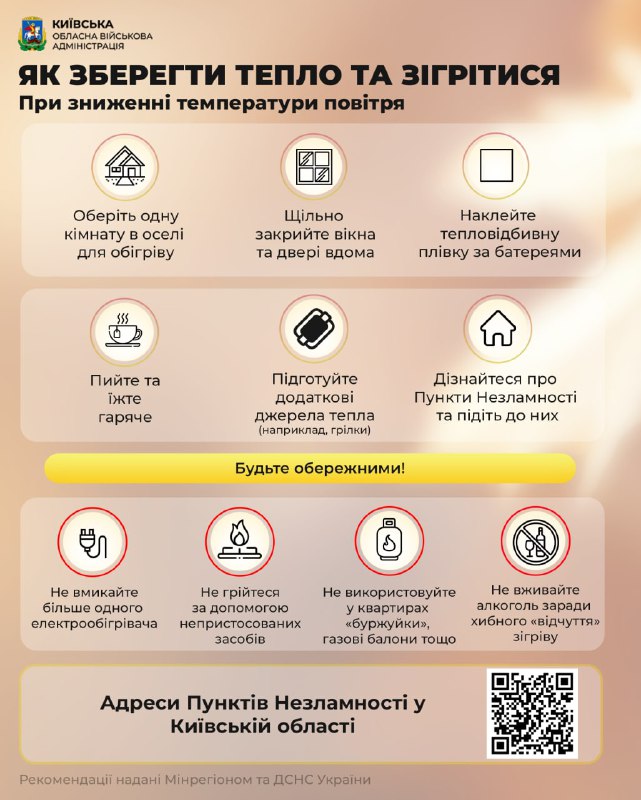 ⚡️Також пам'ятаймо, що в області функціонують Пункти Незламності, до яких ви завжди можете прийти, щоб зігрітися.
